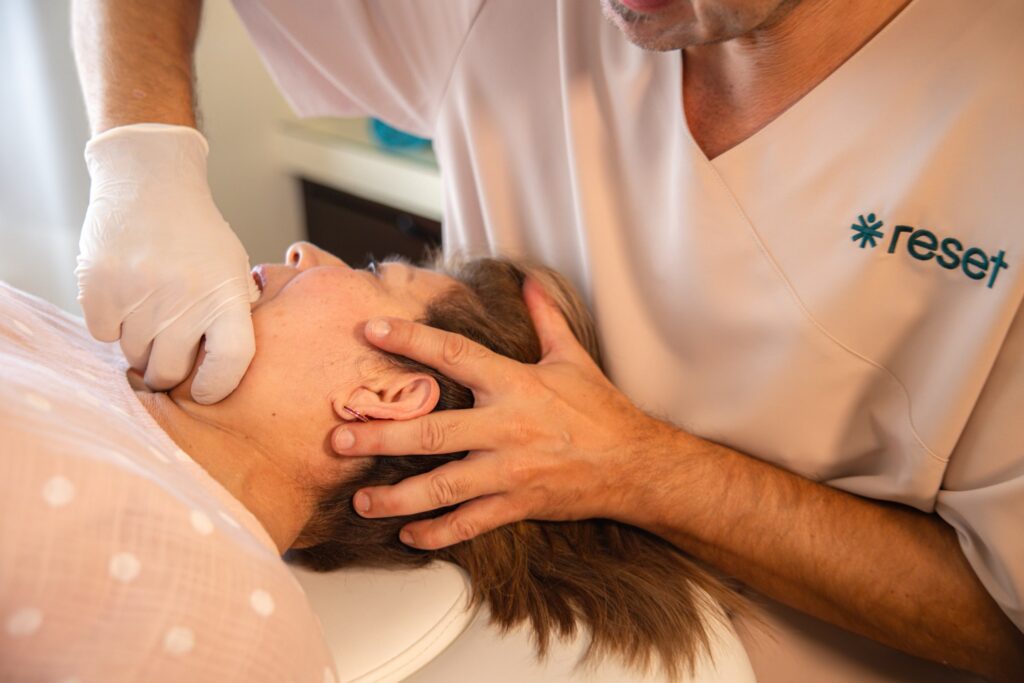 Fisioterapia Maxilofacial ATM Patología de la ATM La patología de la articulación temporomandibular (ATM) puede provocar dolor mandibular, chasquidos, bloqueos al abrir la boca, cefaleas, dolor cervical e incluso síntomas como mareos o acúfenos. Estas alteraciones afectan a funciones básicas como masticar, hablar o bostezar, repercutiendo de forma directa en la calidad de vida. En Fisioterapia Reset somos especialistas en el tratamiento de la patología de la ATM en Barcelona mediante fisioterapia maxilofacial avanzada. Nuestro objetivo es reducir el dolor, mejorar la movilidad mandibular y recuperar una función normal y sin molestias. ¿Qué es la patología de la ATM? La articulación temporomandibular (ATM) conecta la mandíbula con el cráneo y permite funciones esenciales como masticar, hablar y bostezar. Cuando esta articulación o los músculos que la rodean no funcionan bien, puede aparecer dolor, ruidos articulares o dificultad para abrir la boca. A esta disfunción la llamamos patología de la ATM o trastorno temporomandibular (TMD). Fisioterapia Reset BarcelonaTrav. de Gràcia 64, 2º 2º Fisioterapia Reset Badalona Carrer Carme, 56 T. 93 123 456 789Horario de atención:De 9h a 13h y de 16 h a 20 h Reserva cita ATM Síntomas de la patología de la ATM Manifestaciones más habituales Bruxismo (apretar o rechinar los dientes) Estrés emocional Problemas posturales Traumatismos en cara o cuello Alteraciones en la mordida o en la función mandibular ATM Causas frecuentes de la disfunción temporomandibular Los más frecuentes son: Dolor al abrir la boca o al masticar Chasquidos o ruidos en la mandíbula Bloqueos o sensación de mandíbula trabada Dolor en sienes, oído o zona cervical Cefaleas o migrañas tensionales Sensación de mandíbula sobrecargada o cansada Zumbidos en los oídos (tinnitus) Fisioterapia Reset BarcelonaTrav. de Gràcia 64, 2º 2º Fisioterapia Reset Badalona Carrer Carme, 56 T. 93 123 456 789Horario de atención:De 9h a 13h y de 16 h a 20 h Reserva cita ATM Tratamiento conservador en Fisioterapia Reset Barcelona En nuestras clínicas de Barcelona y Badalona tratamos la ATM con un enfoque integral: actualmente usamos los criterios internacionales más avanzados: los DC/TMD. Dividen la evaluación en dos ejes: Eje I – Diagnóstico físico Identifica si hay: Dolor en músculos masticatorios o articulación Trastornos intraarticulares: luxación discal con reducción, luxación discal sin reducción, hipermovilidad condilar… Limitaciones de apertura o movimiento Son pruebas muy fiables, con alta sensibilidad y especificidad. Eje II – Factores emocionales y conductuales Evalúa: Nivel de dolor y discapacidad Ansiedad, estrés o depresión Hábitos como apretar los dientes Otros dolores crónicos asociados Este modelo nos permite entender no solo qué duele, sino por qué duele y cómo te afecta en tu vida diaria. ¿Por qué elegirnos para tratar tu ATM en Barcelona? Terapia manual específica en mandíbula, cuello y cráneo Ejercicios activos de boca y lengua para recuperar el control mandibular Técnicas para reducir el bruxismo y relajar la musculatura Educación sobre respiración, sueño y gestión del estrés En casos complejos, coordinación con dentistas o psicólogos Fisioterapia Reset BarcelonaTrav. de Gràcia 64, 2º 2º Fisioterapia Reset Badalona Carrer Carme, 56 T. 93 123 456 789Horario de atención:De 9h a 13h y de 16 h a 20 h Reserva cita ATM Preguntas frecuentes sobre la patología de la ATM ¿Es normal que me crujan las mandíbulas? Puede ser normal si no hay dolor, pero si los chasquidos van acompañados de molestias o bloqueos, conviene evaluarlo. ¿Apretar los dientes puede causar dolor mandibular? Sí. El bruxismo es una de las causas más comunes de sobrecarga y dolor en la ATM. ¿Tiene cura? En la mayoría de casos, sí. Con un tratamiento adecuado, los síntomas mejoran o desaparecen. ¿Es solo un problema físico? No. El componente emocional y conductual influye mucho. Por eso tratamos la ATM desde un enfoque global. Pide cita ahora para tu tratamiento del dolor de hombro en Barcelona ¿Quieres volver a mover tu brazo sin dolor? Nuestro equipo de fisioterapeutas expertos está listo para ayudarte. Te ofrecemos un tratamiento eficaz, sin cirugía y adaptado a ti. Fisioterapia Reset BarcelonaTrav. de Gràcia 64, 2º 2º Fisioterapia Reset Badalona Carrer Carme, 56 T. 93 123 456 789Horario de atención:De 9h a 13h y de 16 h a 20 h Reserva cita
